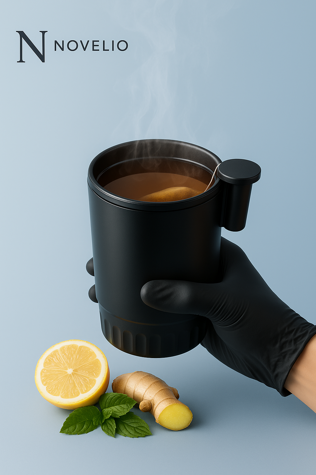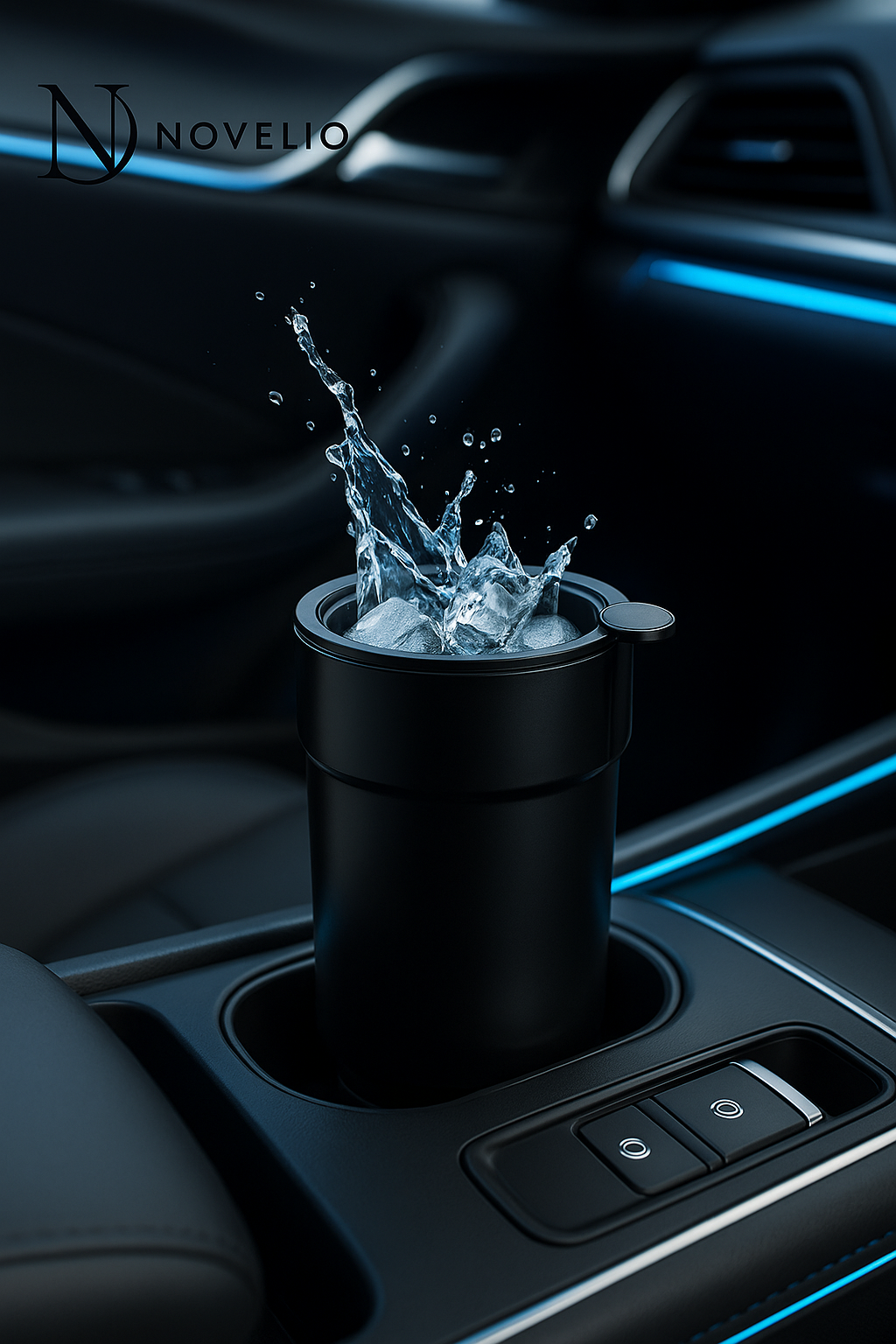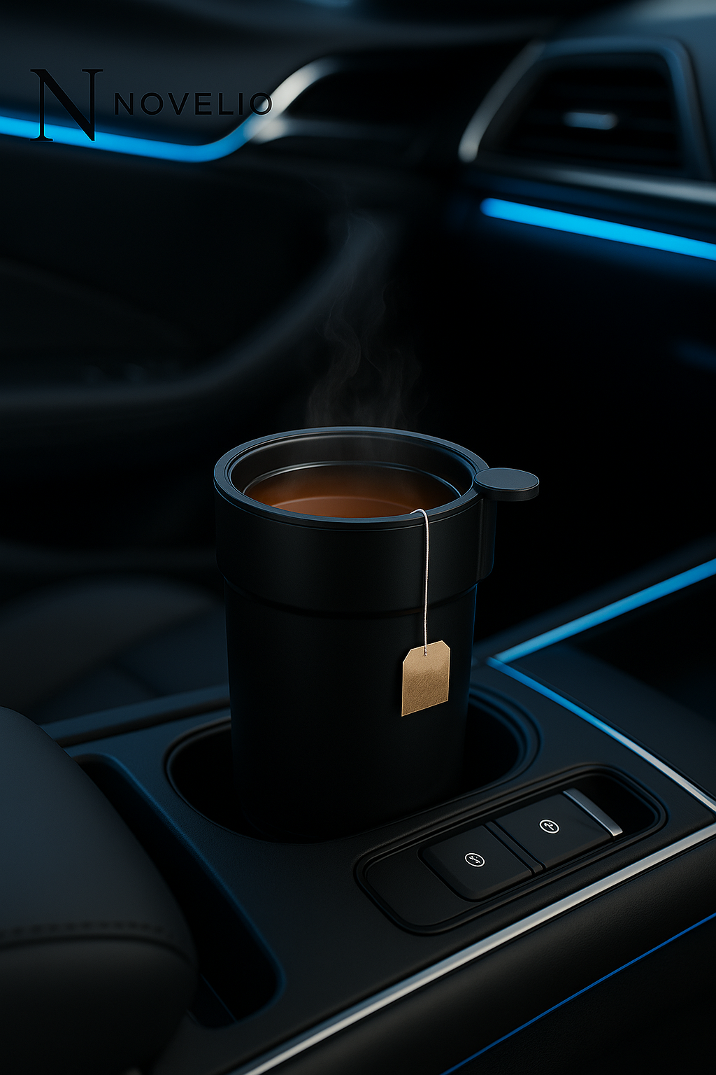 Novelio Getränkehalter® – heizt bis ~60 °C & kühlt bis ~5–8 °C* mit einem Klick. Einfach anschließen & genießen.